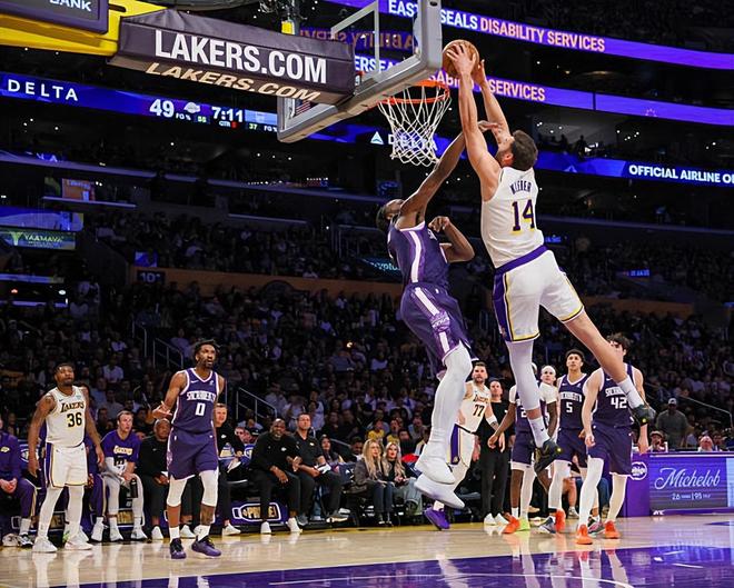 竟然还完成了一记爆扣,湖人替补内线也许偶尔能扮演奇兵的角色?