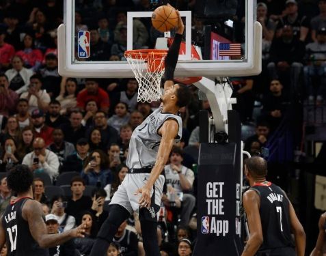 伊森上半场被文班排球扣杀,卡佩拉下半场被文班脚不离地按下,马刺的反击。